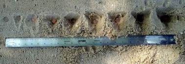 seen very clearly, as is a length of metal wire which was placed beneath the sand surface.