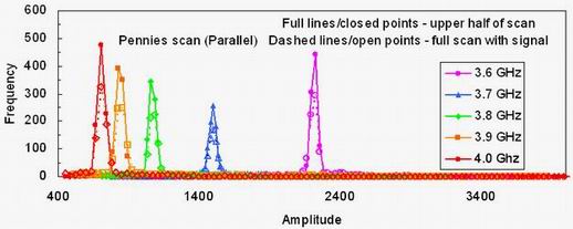 shows this scan for each of the five frequencies. It is seen that for penny 1 all the