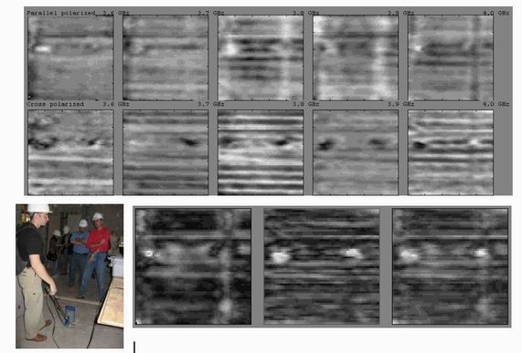 In the pennies experiment the summed images showed all pennies distinctly. In the Fackenthal Hall experiment the summed images showed all the expected features, including the conduit, the metal mesh and the deeper metal pan decking.
