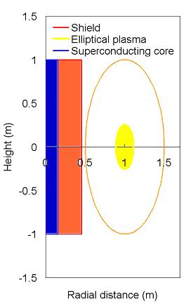 R0 = 1.35 m, a core radius rsc = 0.23 m and a shield