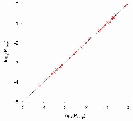 exponentially over the ranges considered, so that interpolation