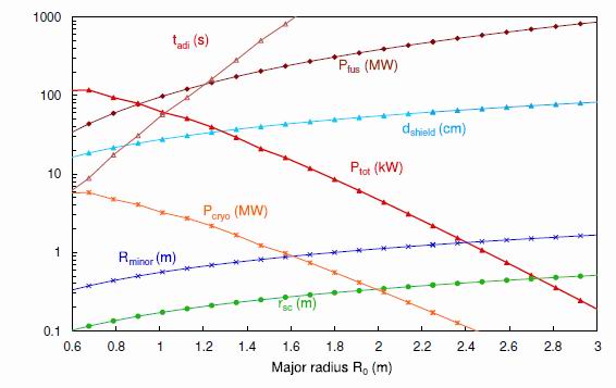less than 5 MW. At still smaller plasma major radii, adiabatic