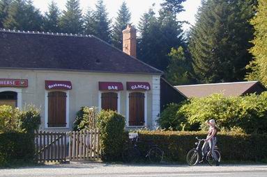 The restaurant is an old hunting Inn. Inside are old photographs of the Duke's hunt and hounds taking their refreshments. There is a good choice of dishes on the set menu for €10. We had a freshly cooked quiche lorraine and an egg mayonnaise. Both served very fresh and tasty with salad. For main course we both had steak. Mine was Steak Hache (minced a la hamburger) but freshly done with a mustard sauce and most excellent. Mo's was a Steak (long thin beef slices) and very good. We shared a litre of cider.