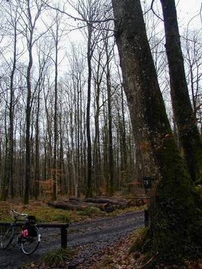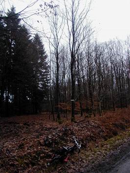 And so they grow until the trees are large enough that there timber is valuable. But still the best trees are left, often having a paint mark drawn all round their waists to indicate that they will grow old! The picture to the left is taken from the track leading to the Roman Fort on the way back to La Bruyere. Sizable trees were cut here only recently as you see, but the forest remains full of great oaks.