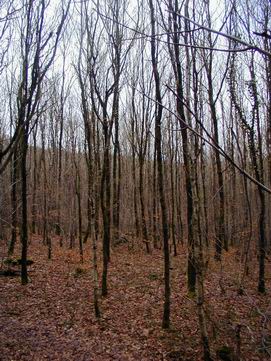 Beyond the big old trees is another sector and the picture below shows a close up of this area of the forest. The undergrowth has been cleared and the trees thinned out so that only oaks remain. They are small but growing fine!