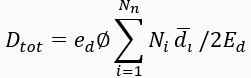 Here ed is the dpa efficiency factor and is set to 80%, φ is the neutron fluence as determined by MCNP, Ni is the number of atoms of type i=1,Nn, dl bar is the dpa reaction cross section and Ed is the displacement energy of each