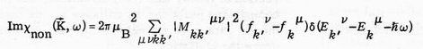 of the Lindhard susceptibility expression, the f's being temperature-dependent Fermi-Dirac occupation factors and the sum running over the Brillouin zone of electron wave vectors k,k' and all five values of each band index m, n. The real part was then derived from (1) using the Kramers-Kronig relation, the integral in that relation being extended over the complete range for which Imc is nonzero.