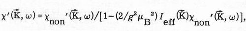 Our theoretical unenhanced S is illustrated by the dotted line in Fig. 2 and is seen to be in severe disagreement with the data. However, according to Izuyama, Kim, and Kubo 7 the effect in RPA of a Coulomb repulsion term in the Hamiltonian is to enhance c' as it were by a molecular field, and it is not difficult to show that with the most general RPA the molecular-field constant is the Fourier transform Ieff(k) of the effective Coulomb repulsion integral Ieff(r). Then
