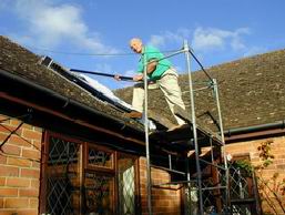 A new water butt feeds rain water to our bathroom toilet. James' old garage door frame was used to elevate it so there are no pumps. Two float valves allow either mains or rain water to be used.