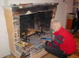 In November Colin demolished the fireplace at La Bruyere to reveal the original one and we had our first fire.