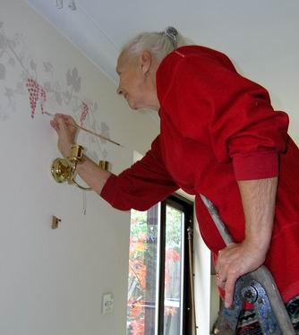 In October Mo redecorated our lounge replacing the old frieze with hand-painted vines