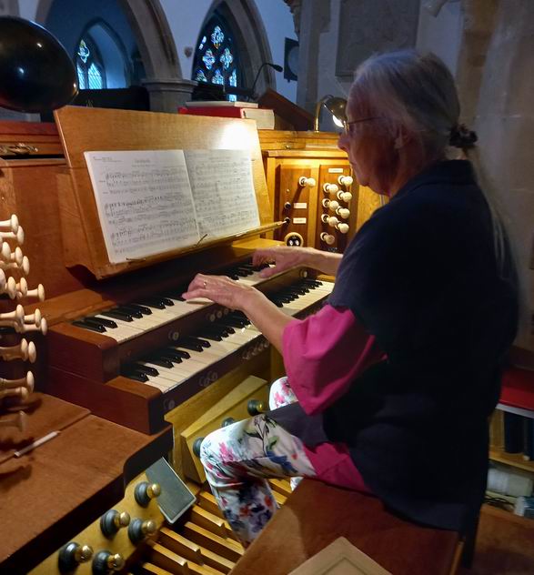 Mo playing the organ at lovely East Hagbourne church. She has now joined the PCC.