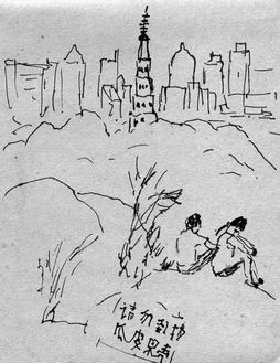 To the south of the lake, the picture shows Xizhao (Sunset Hill) with the newly restored Leifeng