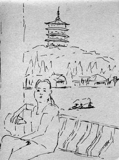 painting of view from the pagoda made in ancient times. All the time I was there, the weather was not clear,