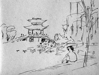 They were amateurs playing in a little pagoda, their two-string violin, a flute, and a coteau.