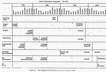 Year Items Total Cost ( UK poundsK) 1976 Cold moderator (20K 20 1977 Experimental Hall (80K), Spectrometers (120K) 200 1978 Laboratories (70K), Spectrometers (100K) 170 1979 Tangential Moderator (20K), Spectrometers (150K), Computer (50K) 220 1980 -> Booster construction -