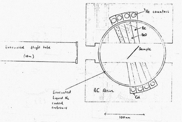 3.5 m. flight path from moderator to specimen. The 1.7 m. iron shot loaded