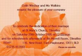Our big do on 29/10/05 was a Dedication Service at our own St Mary's Church at Streatley where Mo played the organ. It is a wonderful community at our Church. The whole congregation were invited to the service and for a glass of bubbley and nibbles. The weather was kind.